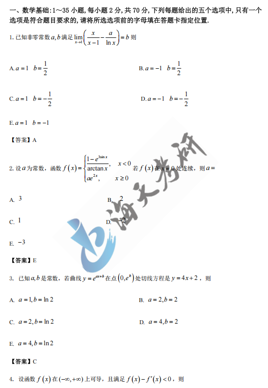 2025全国研究生初试已经全部结束,2025经济类综合能力大家考的怎么样呢?知道大家都在关注2025考研经综真题及答案解析,海天考研网为各位考生带来2025管综396考研真题完整版,包括经综396数学基础内容,助力各位学子考研初试后核对答案提前估分,2026考研生也可以提前了解一下。